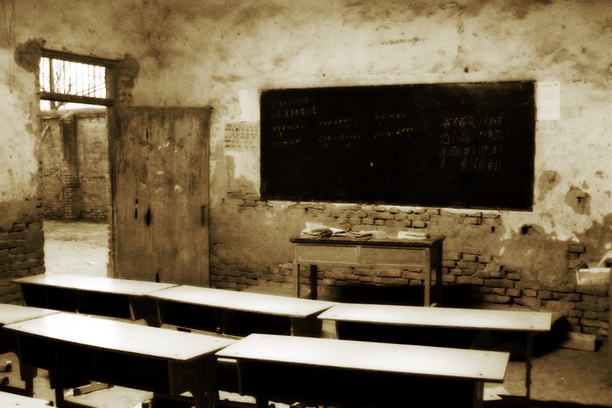 家鄉(xiāng)地處關(guān)中道與陜北高原過渡地帶偏北的一個小鄉(xiāng)鎮(zhèn),那里山梁起伏、溝壑縱橫,我的初中建于臺塬層疊的高梁之上,北邊與洛川隔溝相望,南面是一道陡直的大土坡,坡下連接著一條六七十米的土街道,街道兩邊多是平房,平常人較少,只有逢“二、七”過會趕集時,四鄰八鄉(xiāng)的人都擁擠到街道,才是最熱鬧的時候。學校建于上個世紀六十年代,校舍多是平房和窯洞,有七八間大平房和數(shù)十孔窯洞,磚瓦平房、木頭門窗,鑲嵌著幾塊玻璃,桌椅缺胳膊少腿是常有的事,有的教室千瘡百孔,一遇下雨天,是屋外大雨連著屋內(nèi)小雨。