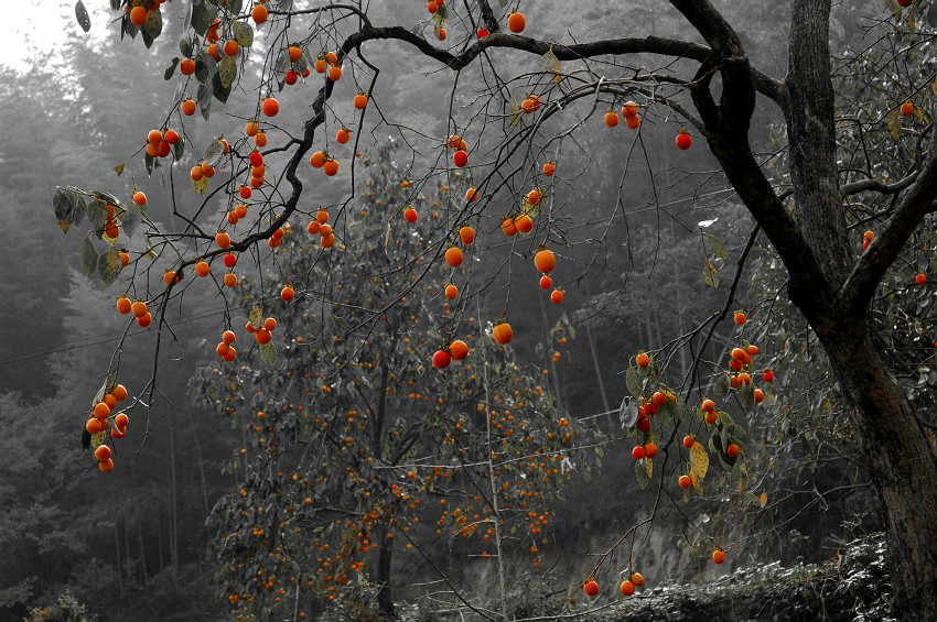“滿樹柿紅染秋色,遍地草枯應(yīng)霜寒”。噢,是的,剛剛過了霜降,這時候的柿子應(yīng)該是最甜最好吃的。