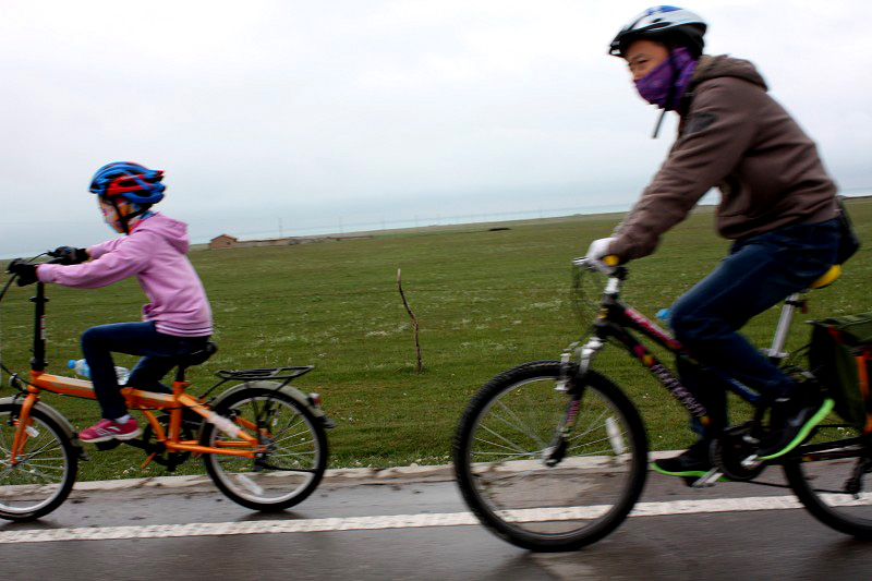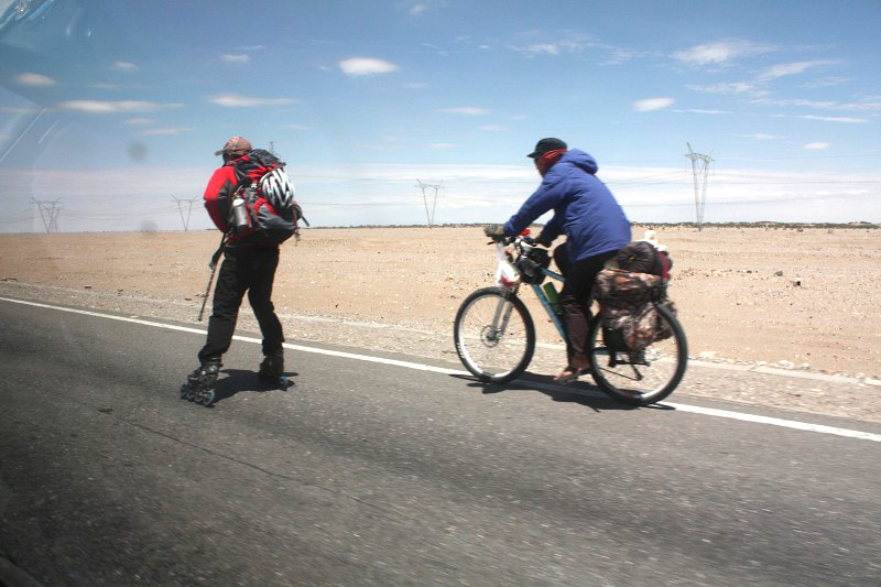“抓拍”遠(yuǎn)處的高山平原、河流湖泊等景觀也許不是最難的事情。問題是在時(shí)速60~100km運(yùn)行的汽車上去“抓拍”也在運(yùn)動(dòng)中的自行車騎行者,或者是運(yùn)動(dòng)中的動(dòng)物,這就太需要相機(jī)功能設(shè)置和拍攝技巧了。本人是騎行愛好者,在進(jìn)藏旅途遇到騎行者和徒步旅行者,心中會(huì)悠然產(chǎn)生一種敬意,禁不住要多多按下相機(jī)快門,然而,技不如人,絕大多數(shù)都拍“糊了”。