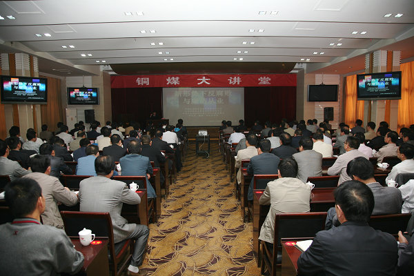 5月18日上午,國(guó)家二級(jí)高級(jí)檢察官、全國(guó)職務(wù)犯罪偵查專家張亮教授走進(jìn)銅煤大講堂,為公司管理干部作了一堂題為《新形勢(shì)下反腐敗與廉潔從業(yè)》的精彩講座。銅川市檢察院檢察長(zhǎng)趙亞光、副檢察長(zhǎng)張宏甫,銅川市黨代表尹德民、趙軍平、閆東玉;公司領(lǐng)導(dǎo)王蓬、郭寶輝、劉水利、徐捷、師同民,公司各副總、機(jī)關(guān)各部室副處級(jí)以上領(lǐng)導(dǎo)干部,基層各單位副總以上領(lǐng)導(dǎo)(跟班、值班領(lǐng)導(dǎo)除外)以及人、財(cái)、物、事管理崗位負(fù)責(zé)人、紀(jì)委副書記、監(jiān)察科長(zhǎng)共270余人聆聽了講座。