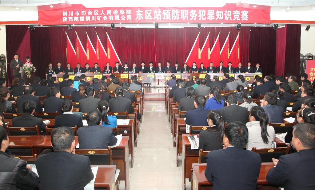 會(huì)后,印臺(tái)區(qū)檢察院、公司東區(qū)站在王石凹礦中心會(huì)議室舉辦了預(yù)防職務(wù)犯罪知識(shí)競(jìng)賽。公司預(yù)防職務(wù)犯罪東區(qū)站成員單位玉華礦、東坡礦、金華山礦、王石凹礦、徐家溝公司、鴨口公司、一五三廠以及東坡洗煤廠共八只代表隊(duì)參加了比賽。公司黨委書(shū)記王蓬,黨委副書(shū)記、紀(jì)委書(shū)記徐捷,紀(jì)委副書(shū)記王發(fā)明,銅川市人民檢察院副檢察長(zhǎng)杜建成,印臺(tái)區(qū)、王益區(qū)、耀州區(qū)檢察院領(lǐng)導(dǎo),公司各部門(mén)相關(guān)領(lǐng)導(dǎo)以及王石凹礦干部職工共200余人觀看了比賽。