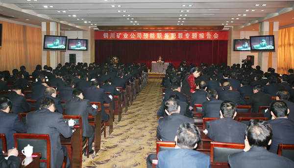 4月13日上午午九點,銅川礦業(yè)公司在煤業(yè)賓館舉辦了預防職務(wù)犯罪專題報告會。公司黨政領(lǐng)導、副處級以上領(lǐng)導干部及人、財、物關(guān)鍵崗位人員200余人參加。