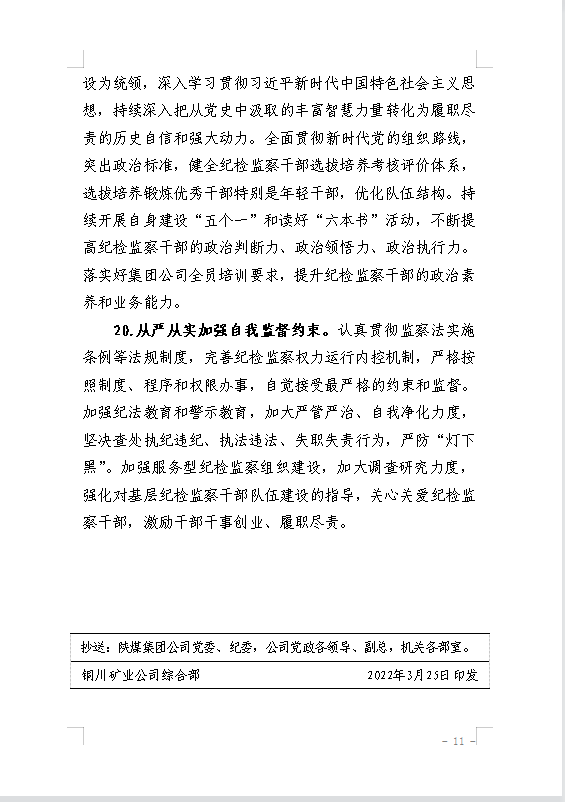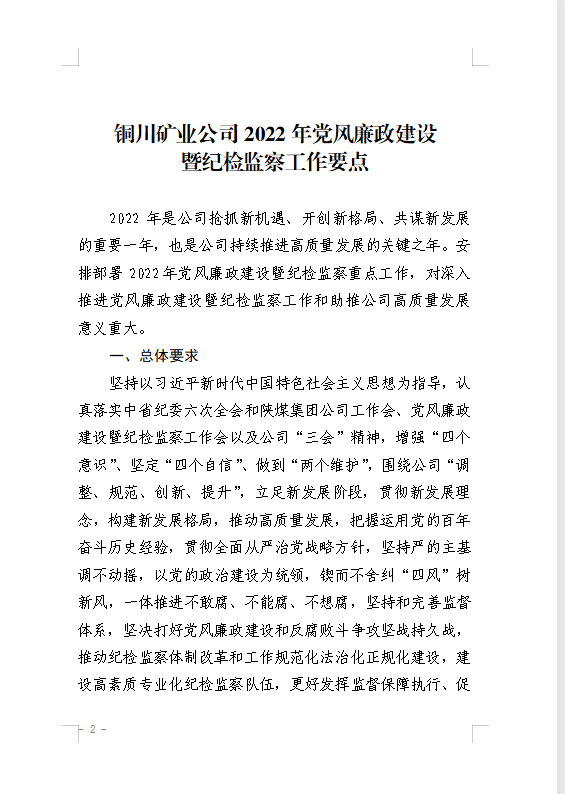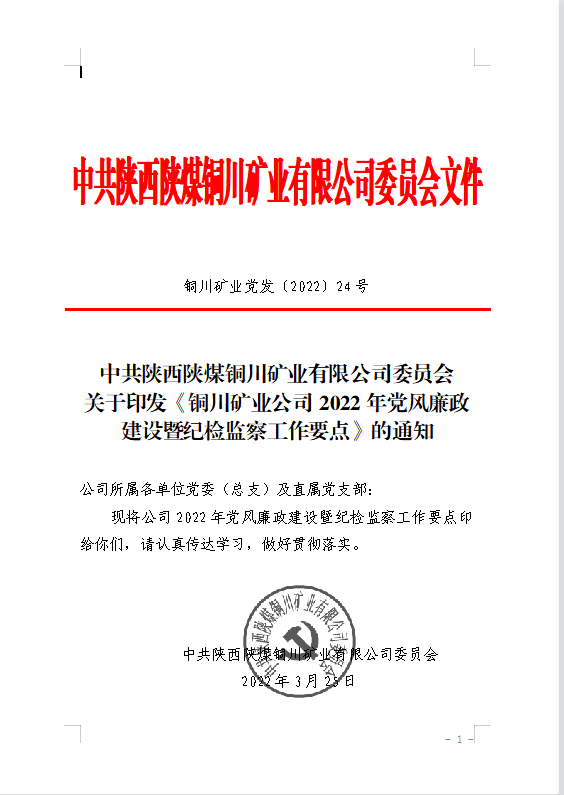 關(guān)于印發(fā)《銅川礦業(yè)公司2022年黨風(fēng)廉政建設(shè)暨紀(jì)檢監(jiān)察工作要點》的通知