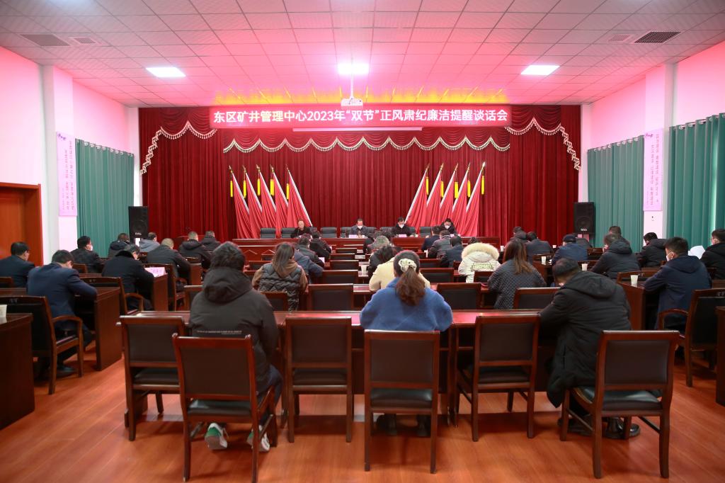 1月12日上午,東區(qū)礦井管理中心召開2023年“雙節(jié)”正風(fēng)肅紀(jì)廉潔提醒談話會,旨在進(jìn)一步增強黨員干部廉潔過節(jié)意識,筑牢拒腐防變的思想防線。