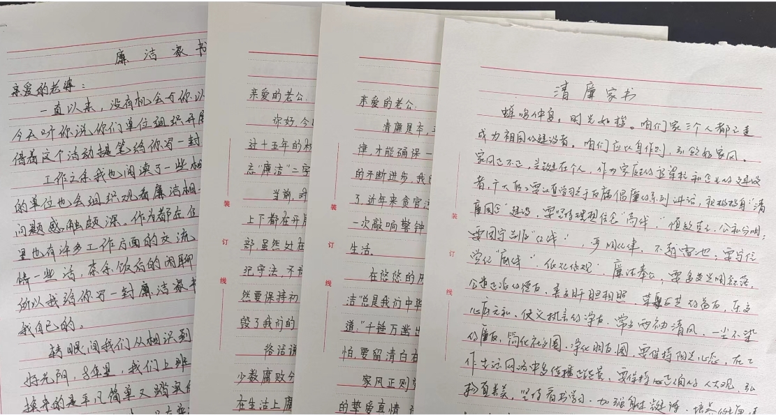 此次活動共收到廉潔家書10封,樹立了“以清為美、以廉為榮”的價值觀,著力打造清正廉潔的年輕干部隊伍,同時號召干部家屬以德治家、以儉持家、以廉保家,共同攜手營造倡廉、家庭助廉的良好氛圍和濃厚的廉潔氛圍。