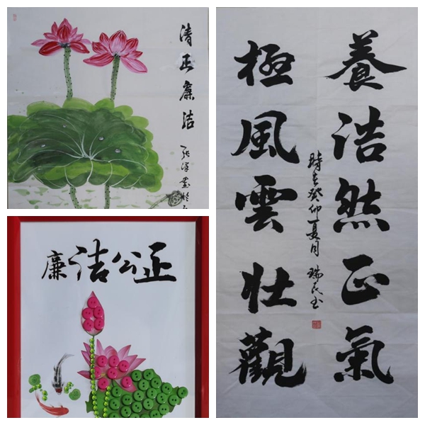 活動(dòng)中,礦井職工各顯神通,有的寫書法,有的做手工,有的畫水墨畫。“養(yǎng)浩然正氣 極風(fēng)云大觀 ”,“廉潔公正”。共征集主題鮮明、富有創(chuàng)意作品50余幅。通過發(fā)現(xiàn)“廉文化”,贊美“廉文化”,弘揚(yáng)“廉文化”,從不同維度表達(dá)、傳播“廉為榮,貪為恥”的廉潔理念,展現(xiàn)了新時(shí)代崇廉尚潔、健康向上的精神風(fēng)貌。
