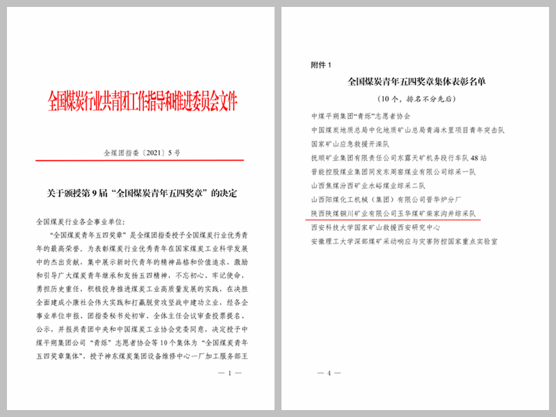 “全國煤炭青年五四獎章”是全國煤炭行業(yè)共青團工作指導和推進委員會授予全國煤炭行業(yè)優(yōu)秀青年的最高榮譽,旨在樹立政治進步、品德高尚、貢獻突出的優(yōu)秀青年典型,反映當代青年的精神品格和價值追求。全國煤炭系統(tǒng)共有10個集體獲獎,公司柴家溝井綜采隊是陜煤集團唯一受到表彰的先進集體。