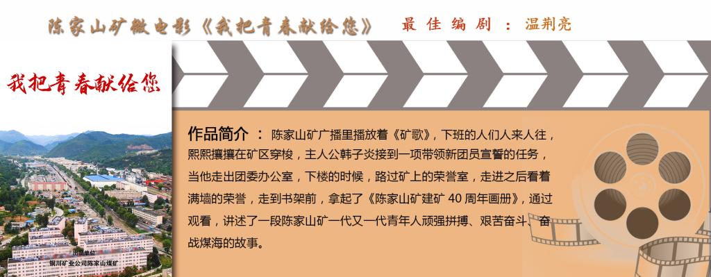 陳家山礦微電影《我把青春獻(xiàn)給您》以公司涌現(xiàn)的“全國煤炭工業(yè)勞動(dòng)模范”康紅牛、何萬明,“全國煤礦建功立業(yè)優(yōu)秀大學(xué)畢業(yè)生”韓奇為原型,講述了陳家山礦一代代青年頑強(qiáng)拼搏、艱苦奮斗、鏖戰(zhàn)煤海的故事,摘得“最佳編劇”獎(jiǎng)。