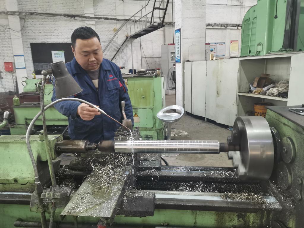石磊剛剛進(jìn)入單位的時(shí)候才二十出頭,只是一個(gè)普通的車工學(xué)徒,“打雜”“磨刀”“粗車”日常車間工作十分枯燥繁重,工作環(huán)境也比較嘈雜,冬天冷夏天熱,粉塵也時(shí)有彌漫。但這些他從未在意過,始終認(rèn)真負(fù)責(zé),兢兢業(yè)業(yè),任勞任怨?!叭倭校行谐鰻钤?。咱們既然選擇了這一行,那就得學(xué)點(diǎn)真本事,當(dāng)車工中的狀元?!笔诳偸沁@樣勉勵(lì)自己,工作越干越有勁。由于扎實(shí)的基礎(chǔ),看圖紙,排工序,卡坯料,選刀具,粗車削加工,精車削加工……上手十分順利,沒到半年便可以獨(dú)當(dāng)一面,一個(gè)人控制一個(gè)車床。后來他依舊堅(jiān)持學(xué)習(xí),積極參加公司青年職業(yè)技能大賽和青工技能培訓(xùn),考取了車工高級(jí)工職稱,成為了公司車工隊(duì)伍里的骨干。