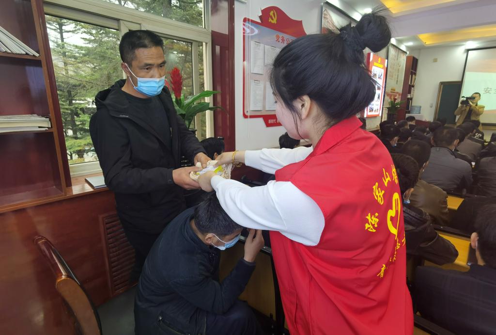 在該礦綜采隊班前會上,青年志愿者一邊為井下一線職工發(fā)放安全小知識,一邊開展安全知識答題,教育引導廣大職工立足崗位認真貫徹落實安全法、安全規(guī)程和安全規(guī)定,提高安全生產意識,確保實現安全生產。
