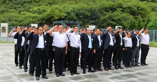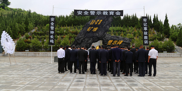 在陳家山“11.28”礦難警示碑前,參加警示教育人員神情莊重、靜默肅立,向遇難礦工紀念碑敬獻花圈,全體人員懷著悲痛的心情面向警示紀念碑默哀,表達對遇難礦工深切的哀思,并在安全警示碑前進行了莊嚴的安全宣誓。