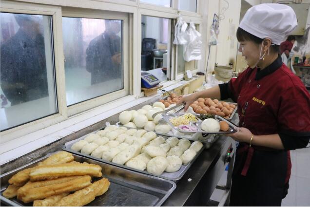 袁曉風(fēng)是職工食堂的一名職工,她主要負(fù)責(zé)日常打飯工作,清晨6點30分,當(dāng)上早班的職工陸陸續(xù)續(xù)走進食堂,她將剛蒸好的饅頭、包子,煮好的雞蛋以及精心準(zhǔn)備好的小菜與一碗熱騰騰的稀飯通過窗口遞到職工手里。袁曉風(fēng)說:“餐飲最能決定職工過節(jié)的心情,一碗熱乎乎的飯菜,一句節(jié)日的溫馨問候,讓職工在井下作業(yè)期間,更能夠感受到節(jié)日的氛圍和項目部大家庭帶來的溫暖。