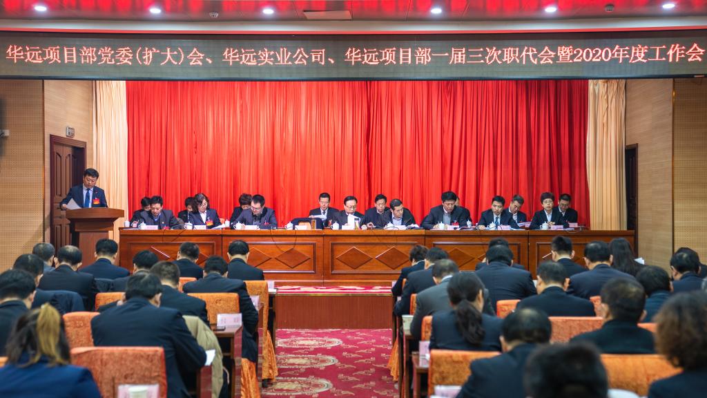1月7日,華遠(yuǎn)項目部黨委(擴(kuò)大)會、華遠(yuǎn)實業(yè)公司、華遠(yuǎn)項目部一屆三次職代會暨2020年工作會在寓園賓館隆重召開。銅川市國資委相關(guān)領(lǐng)導(dǎo)出席會議,項目部(公司)黨政領(lǐng)導(dǎo)、各部門負(fù)責(zé)人、一屆三次職代會職工代表,共120余人參加了會議。