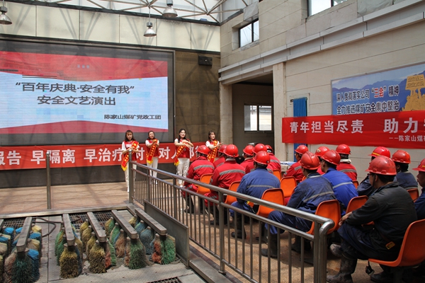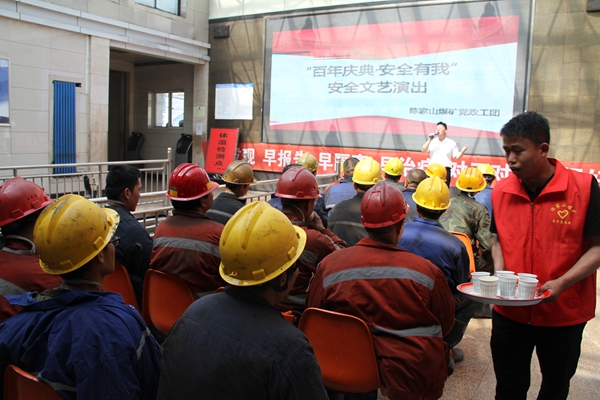 為在“安全月”中營造濃厚的安全生產(chǎn)氛圍,豐富職工文化生活,動員一線職工戰(zhàn)高溫、斗酷暑,打好安全攻堅(jiān)戰(zhàn),陳家山礦在井口開展“送清涼送文藝井口”活動,為高溫下堅(jiān)守崗位的一線職工送去“清涼茶”和精彩的文藝演出。活動現(xiàn)場,伴隨著優(yōu)美的歌聲中,該礦團(tuán)委還為職工們送去了“綠豆湯”,把無微不至的關(guān)愛送到職工的手中、心上。
