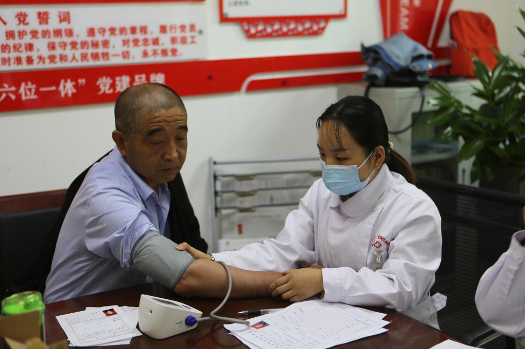 “阿姨,您的血壓稍微高了一點(diǎn)兒,注意每日監(jiān)測血壓,平時(shí)要飲食清淡一點(diǎn)......”“叔叔,您的體重需要控制了,飲食定量,多參與健康運(yùn)動(dòng)......”正在為離退休職工檢查的醫(yī)務(wù)人員精心為他們做專項(xiàng)檢查,結(jié)合體檢情況,耐心分析病情,并給予每個(gè)人健康指導(dǎo)意見。