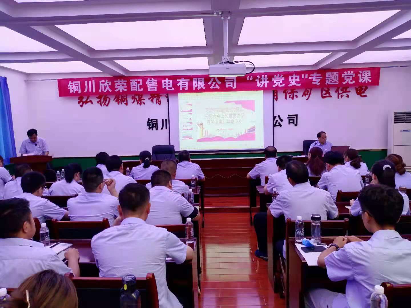 7月7日下午,欣榮公司領(lǐng)導(dǎo)干部上黨課活動進行到了第二場,組織黨員干部集中學(xué)習(xí)了習(xí)近平總書記在建黨100周年慶祝大會上的重要講話精神。該公司黨總支書記以《習(xí)近平總書記在建黨100周年慶祝大會上的重要講話精神及黨的百年奮斗史》為報告主題,為公司60余名黨員干部作了精彩授課。