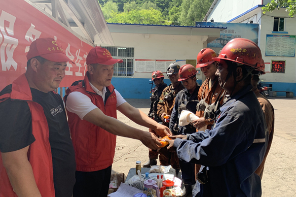 活動現(xiàn)場,青年志愿者們向工友現(xiàn)場提問采、掘、機、運、通等工種的應(yīng)知必會知識,并為回答正確的工友送上洗發(fā)水、洗潔精、香皂、毛巾等禮品,真正讓安全法律法規(guī)在礦山落地落實。通過積極發(fā)揮青年志愿者主觀能動性,開展“弘揚志愿精神 服務(wù)安全生產(chǎn)”送安全茶水活動。井口安全志愿服務(wù)點前的茶幾上,清香四溢的花茶、檸檬、菊花沁人心脾,在炎熱夏日為上下班的干部職工送去清涼和祝福。