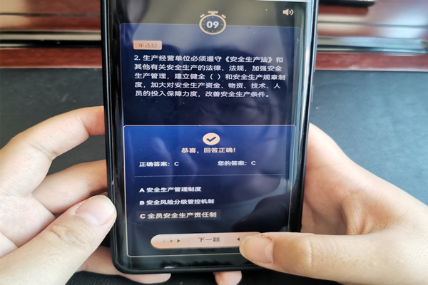 為全面營造學法、守法、用法的濃厚氛圍,該公司在做好線下安全宣傳教育的同時,積極探索安全教育培訓新模式,開展“掌上”安全教育,動員全體員工以鏈工寶APP為平臺,廣泛參與“新安法知多少”網(wǎng)絡(luò)答題競賽活動,通過每日通報積分情況,督促員工每日登錄學習答題,掀起了比知識、賽積分、爭做“安全達人”的學習新熱潮。