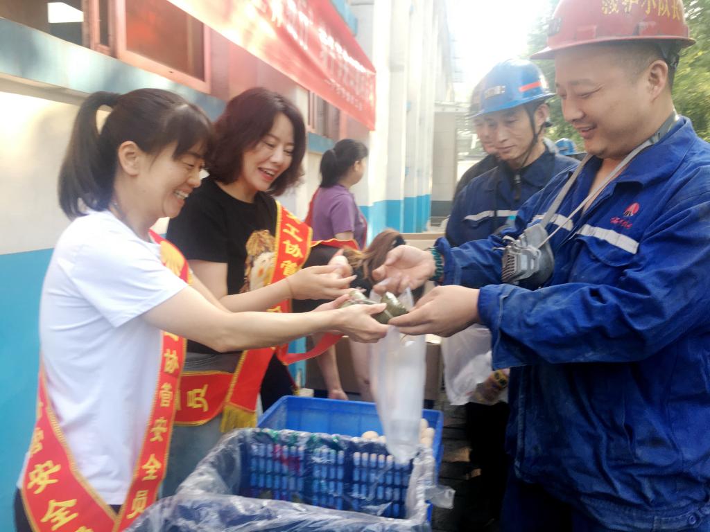 “師傅,您辛苦了,端午安康,工作中一定要注意安全!”一聲聲溫馨的祝福,一句句深情的叮囑,一張張開心的笑臉,溫暖著現(xiàn)場(chǎng)的每位職工。