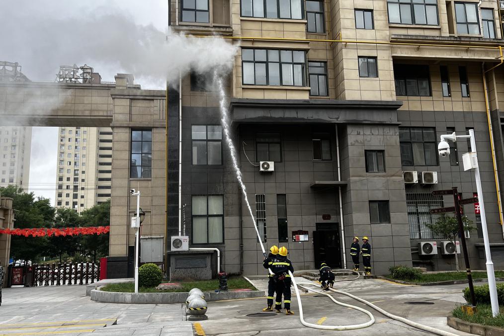 此次演練模擬巡邏人員發(fā)現(xiàn)梅樂園小區(qū)2號(hào)樓3層商鋪,出現(xiàn)“火情”,立即用對(duì)講機(jī)通知中控室值班人員,啟動(dòng)消防應(yīng)急搶險(xiǎn)預(yù)案,并撥打119報(bào)警電話。同時(shí)警戒組、安撫組、搶險(xiǎn)組等趕赴地點(diǎn)開展救援工作,搶險(xiǎn)組引導(dǎo)消防車至著火點(diǎn),警戒組成員開展現(xiàn)場(chǎng)警戒工作,安撫組通過疏散樓梯引導(dǎo)住戶疏散逃生,搶險(xiǎn)組攜帶毛巾、擔(dān)架等物品在一層樓道口幫扶老年人及行動(dòng)不便居民疏散,統(tǒng)一撤至南廣場(chǎng)安全地帶,演練結(jié)束。