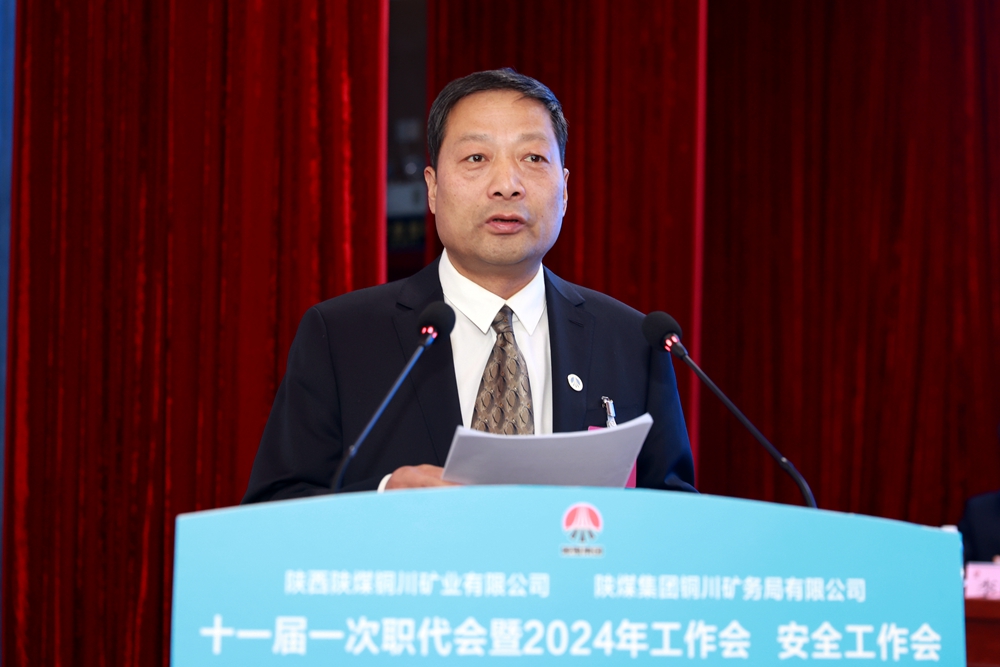 趙福堂在會上講話時,對會議的召開表示熱烈的祝賀,對各位參會代表和公司各條戰(zhàn)線的干部職工過去一年的辛勤工作和取得的成績,表示衷心的感謝和誠摯的慰問,并回顧了銅川礦業(yè)的發(fā)展變遷,對銅川礦業(yè)的歷史貢獻給予了充分肯定。他指出,2023年,銅川礦業(yè)公司新一屆領導班子切實履職盡責,團結(jié)帶領干部職工,以“真抓實干謀發(fā)展、馬上就辦抓落實”的優(yōu)良作風,“以開局就是決戰(zhàn)、起步就是沖刺”的奮進姿態(tài),開創(chuàng)了各項工作發(fā)展新局面,充分展示了新班子的新氣象、新?lián)?、新作為,希望公司繼續(xù)鞏固成績,補強短板、保持優(yōu)勢,加壓奮進、實干爭先,努力為陜煤集團建設世界一流企業(yè)貢獻力量。