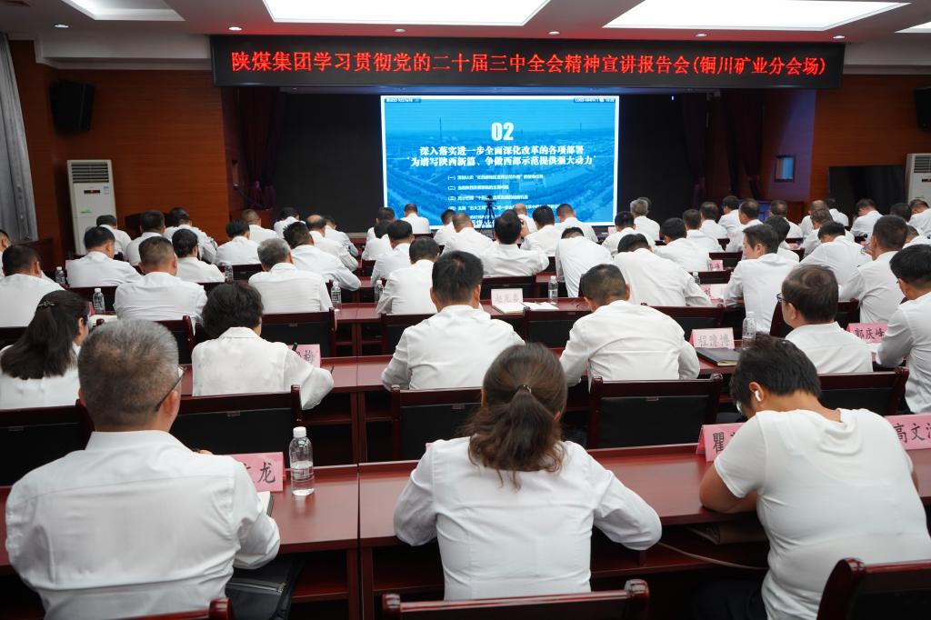 8月27日,陜煤集團(tuán)學(xué)習(xí)貫徹黨的二十屆三中全會(huì)精神宣講報(bào)告會(huì)在集團(tuán)總部召開。省委宣講團(tuán)成員,省發(fā)展和改革委員會(huì)黨組書記、主任孫喜民作宣講報(bào)告。集團(tuán)黨委書記、董事長(zhǎng)張文琪主持報(bào)告會(huì)。公司領(lǐng)導(dǎo)班子成員,各副總師,機(jī)關(guān)各部門負(fù)責(zé)人,各單位黨政主要領(lǐng)導(dǎo)、分管經(jīng)營(yíng)工作的領(lǐng)導(dǎo)和有關(guān)人員,以視頻會(huì)議方式在公司分會(huì)場(chǎng)聆聽(tīng)了宣講。