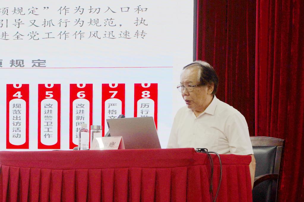 盧飛鷹以《深入貫徹八項(xiàng)規(guī)定精神 推進(jìn)作風(fēng)建設(shè)常態(tài)化》為主題,從“八項(xiàng)規(guī)定精神與反對(duì)‘四風(fēng)’、八項(xiàng)規(guī)定精神與黨的紀(jì)律、多舉措貫徹落實(shí)八項(xiàng)規(guī)定精神,以及一體推進(jìn)學(xué)查改”四個(gè)方面作了專題輔導(dǎo),通過學(xué)習(xí),參培人員對(duì)加強(qiáng)黨的作風(fēng)建設(shè)的重要性有了更深刻的認(rèn)識(shí),對(duì)中央八項(xiàng)規(guī)定精神的精髓要義有了更深入的把握,為開展好學(xué)習(xí)教育打牢了思想根基。