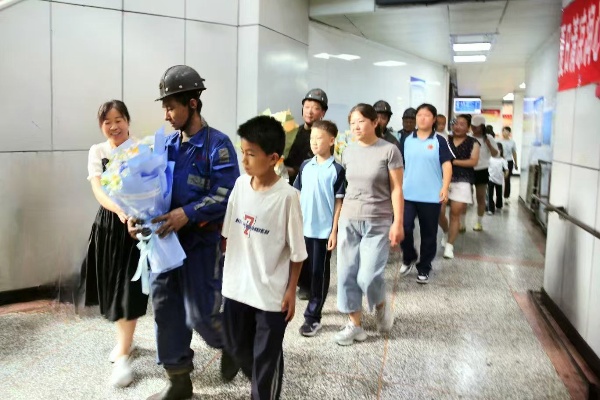 井口洋溢著溫馨的氣息,職工子女們手捧鮮花與蛋糕,在井口安全區(qū)翹首等待父親升井?!鞍职中量嗔耍 碑?dāng)職工們踏出井口,孩子們飛奔上前獻(xiàn)花擁抱,現(xiàn)場響起陣陣掌聲。孩子們用童言稚語表達(dá)著對父親安全的關(guān)切與期盼,真摯的情感讓硬漢們也為之動容。該礦職工南師傅說:“孩子到井口來接我,這份感動比任何禮物都珍貴!”隨后家屬們?yōu)槁毠に蜕硝r花,全家攜手一起合影,用鏡頭定格團(tuán)圓時(shí)刻。這一刻,親情與責(zé)任交織,凝聚成“安全生產(chǎn)、幸福相伴”的集體共鳴。
