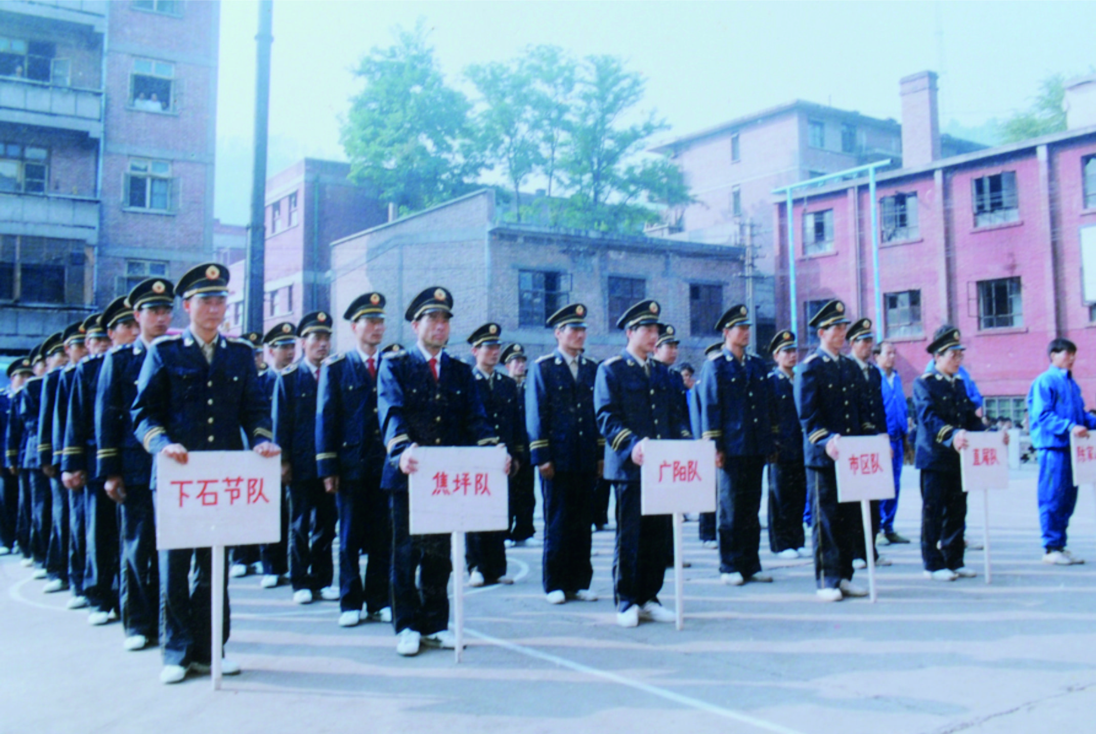 “早些時候宿舍沒有暖氣,冬天睡覺要裹著兩層棉被;裝備只能堆在露天場地,遇到下雨就得趕緊用塑料布蓋,生怕機器受潮失靈。最讓人頭疼的是訓(xùn)練條件,沒有固定的訓(xùn)練場地,隊員們只能在狹窄的的空地上練習(xí)隊列,到附近的人民公園的開闊區(qū)域和上山的階梯等區(qū)域強化基礎(chǔ)體能”老隊員回憶說。
